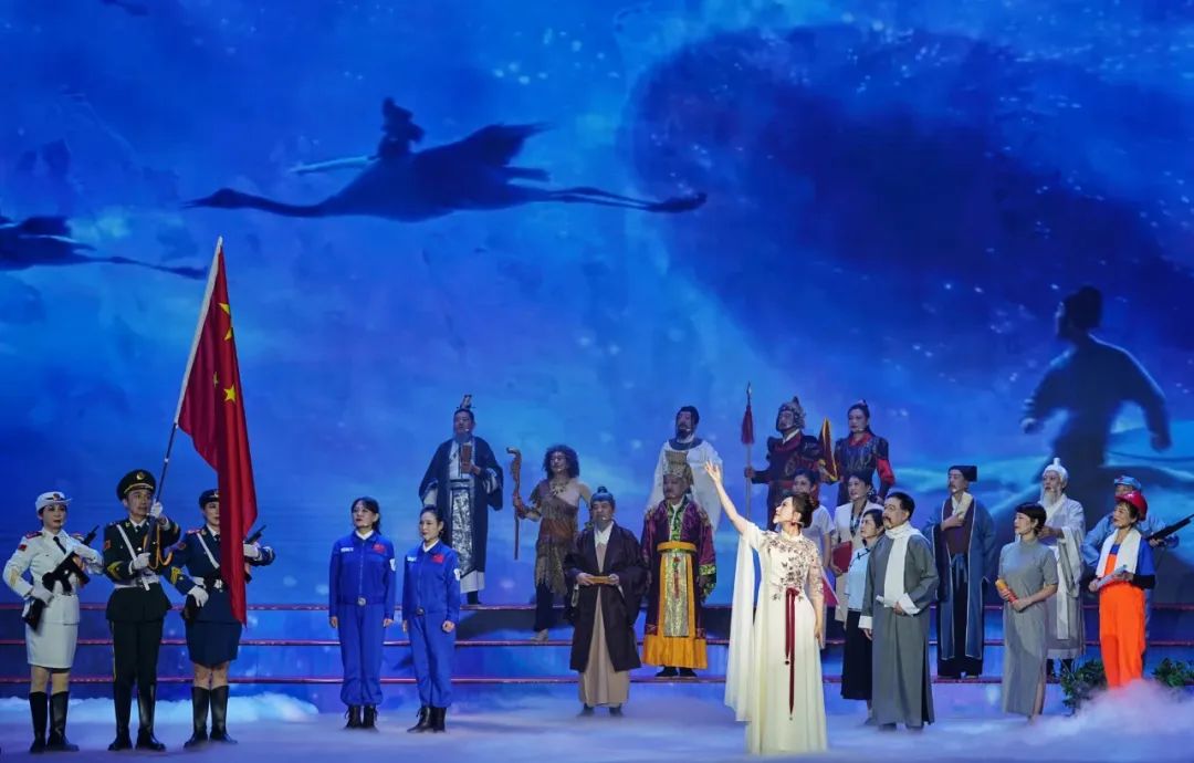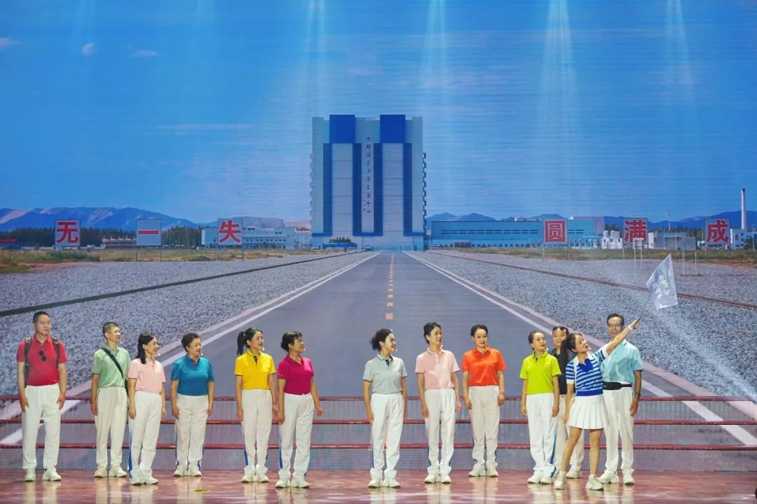 除了動人的歌曲演唱,主題歌會上還穿插了《逐夢華夏》《追夢旅行》等情景表演歌唱節目。老同志們換上了代表不同年代的服飾。他們以歌聲為媒,穿梭在時代長河中,生動再現了幾代航天人接力奮斗、勇攀高峰的感人故事。