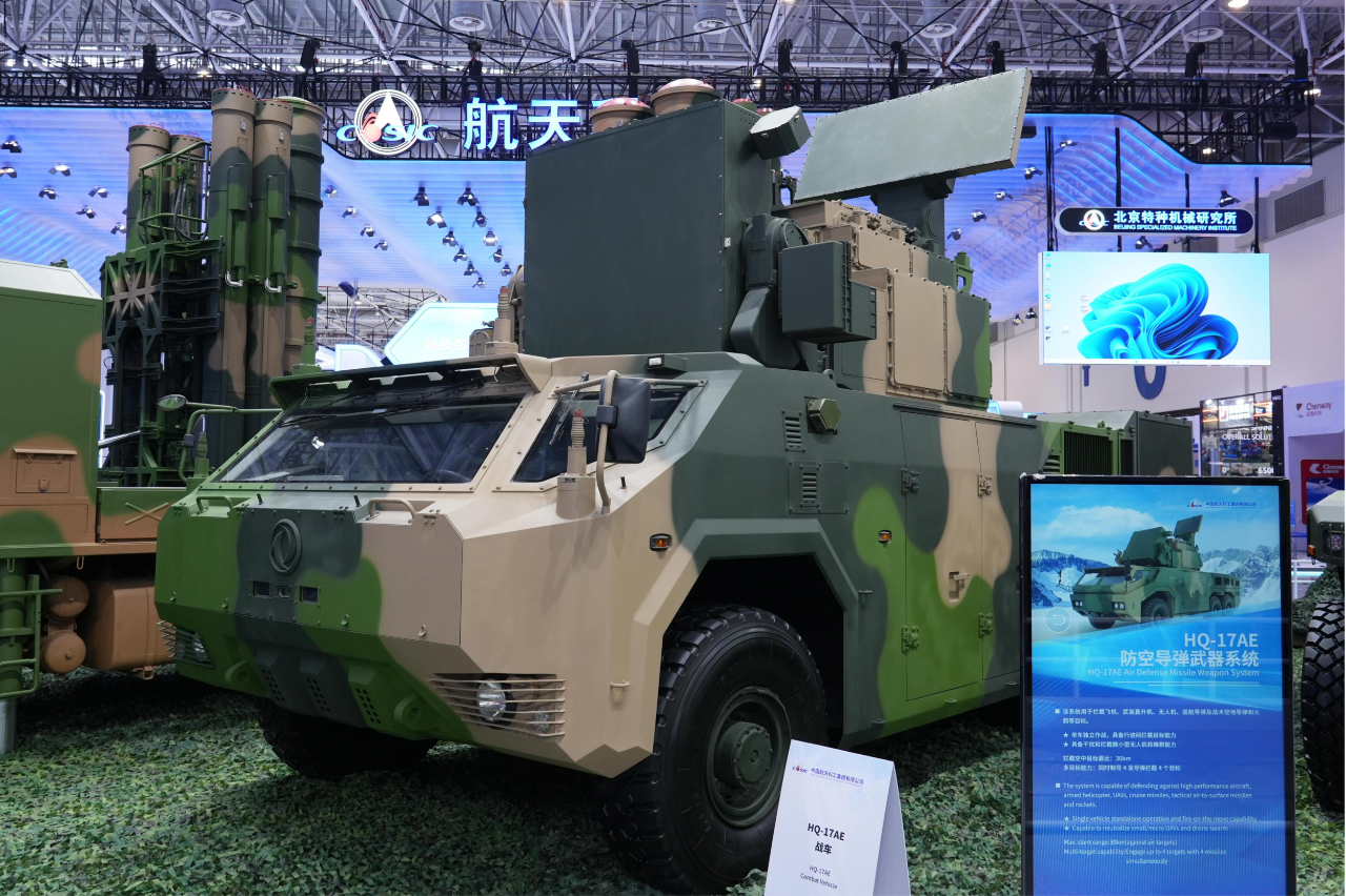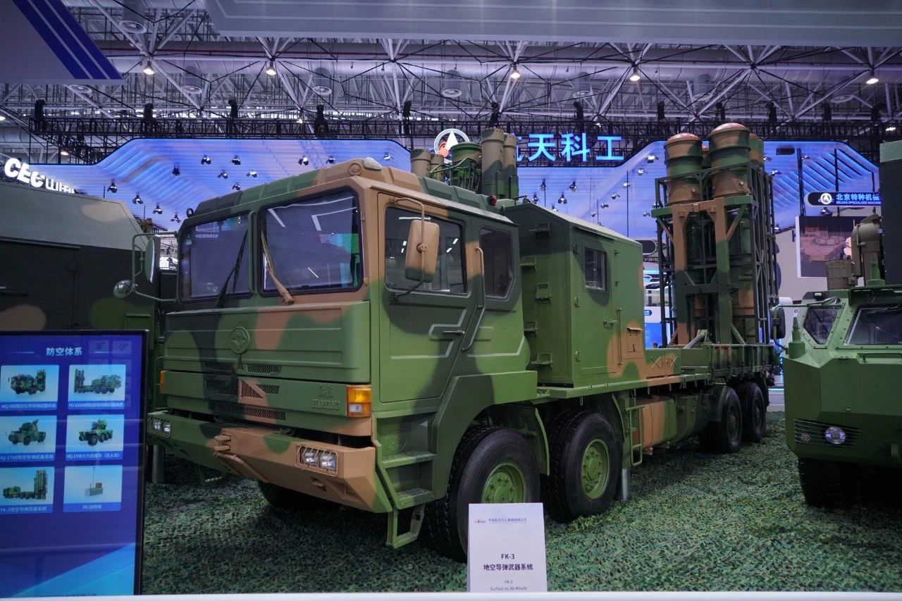在防空體系展區,HQ-9BE遠程防空武器系統、FD-2000A中遠程防空武器系統、FK-3中遠程防空武器系統、HQ-17AE近程防空武器系統等“明星裝備”煥新亮相。