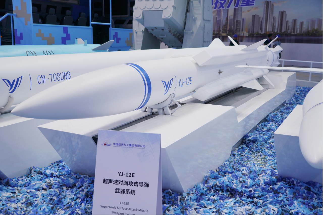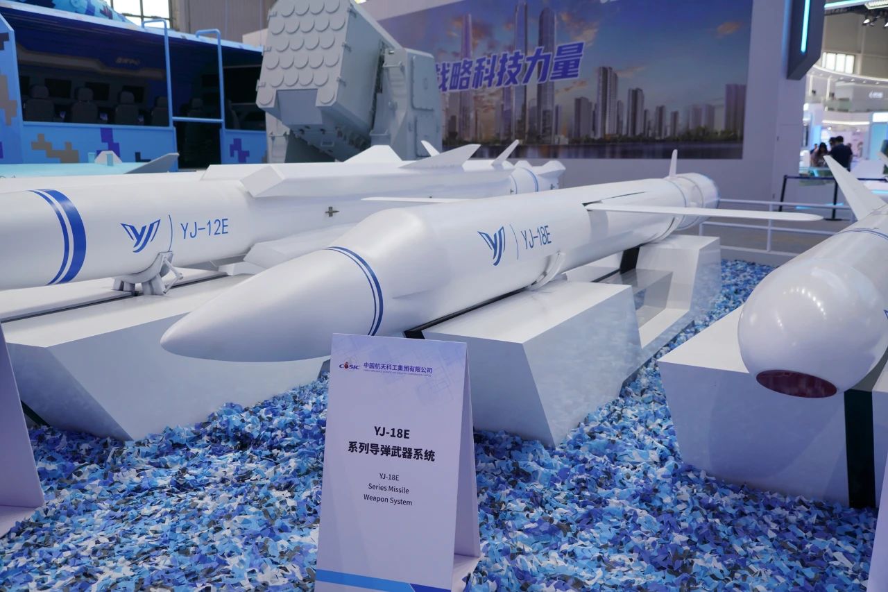 在第十五屆中國國際航空航天博覽會上,中國航天科工集團有限公司展出了一體化海防武器系統,YJ-12E、YJ-18E、CM-708UNB、CM-401等多款“明星裝備”組合亮相。