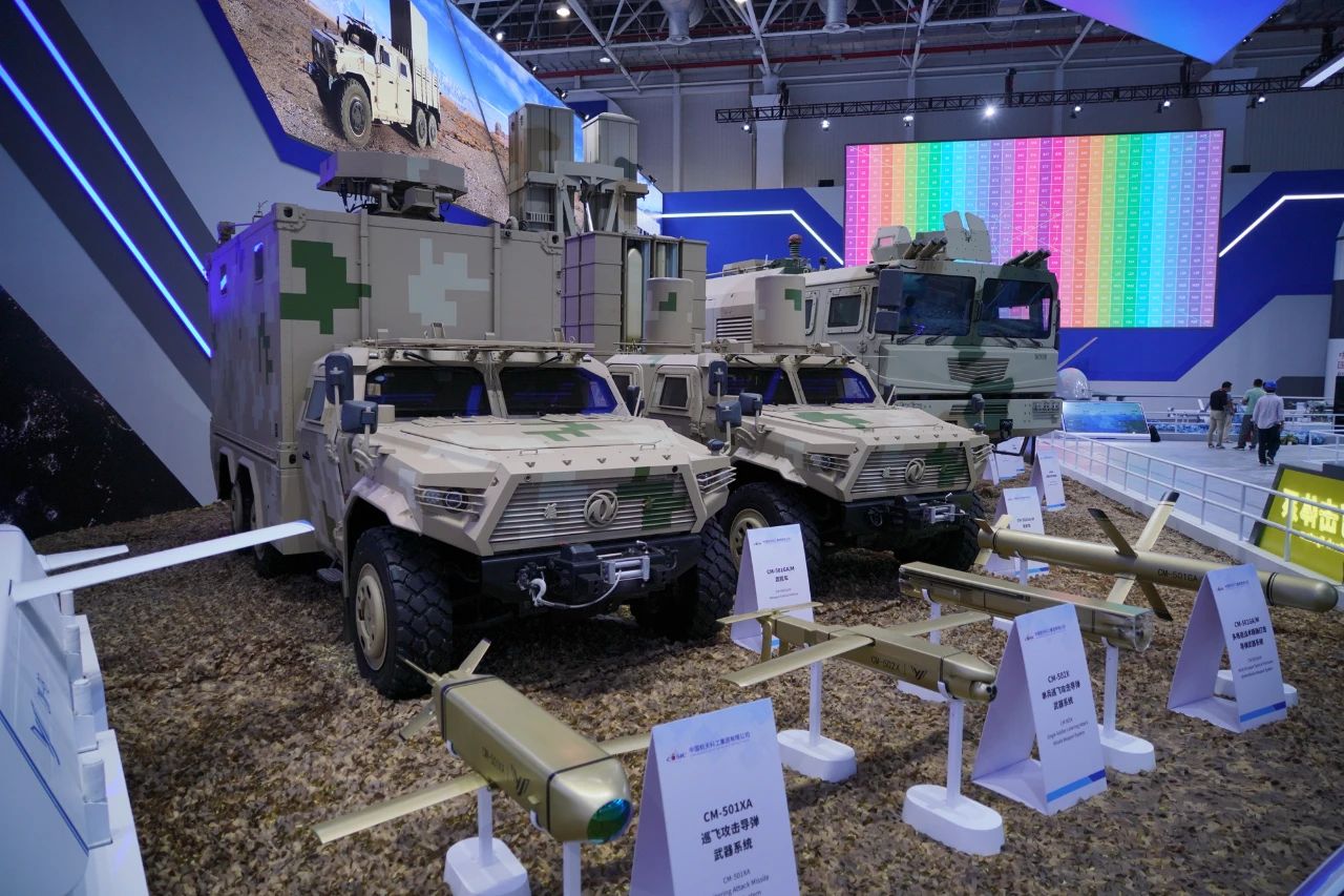 其中,CM-98隱身多用途導彈、CM-502X單兵巡飛攻擊導彈均為首次亮相。CM-98是根據國際市場需求研制的一型隱身多用途導彈武器系統,可在防區外遂行打擊對方高價值目標,具有全天時、全天候使用,高隱身穿透、抗干擾突防、寬飛行包絡、高效能毀傷、易于維護保障等特點。CM-502X能夠高效打擊重型主戰坦克,具有靈巧打擊、多模式簡易發射等特點。