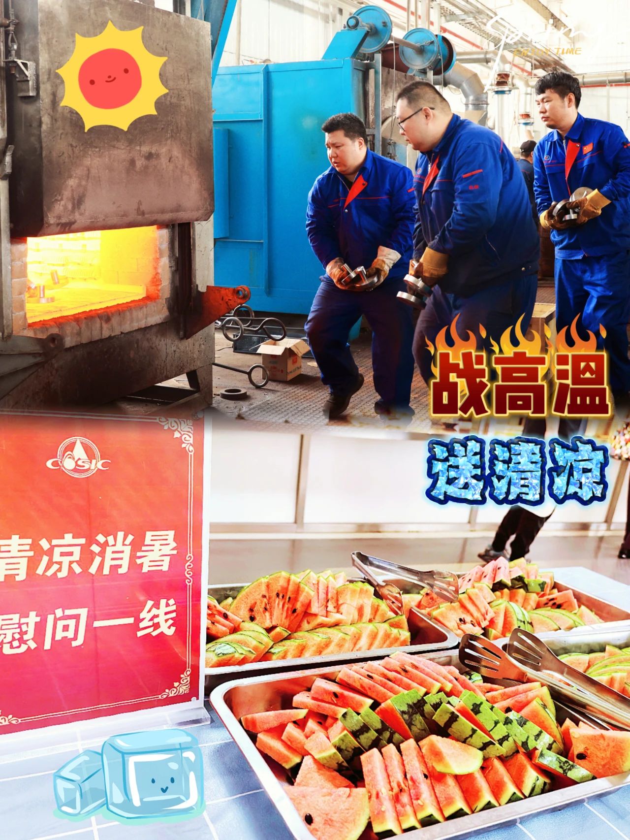 高溫下作業的科研生產一線干部職工始終牽動著各級黨組織的心。7月23日,中國航天科工三院領導同院本部相關部門走進159廠熱處理廠房、物資部下料車間,來到生產車間、操作臺前、職工中間,將解暑飲品送到高溫作業現場,把清涼送到一線,也帶去院黨委的關心關懷。