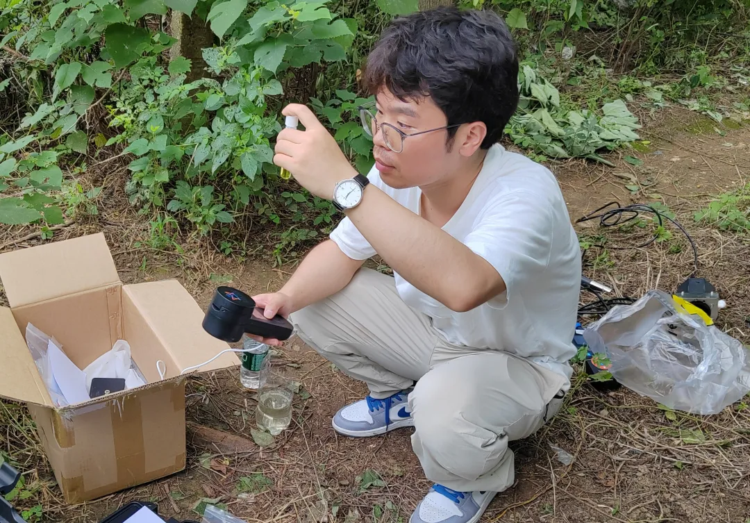 近日,行云公司水環境監管示范應用項目組成員前往武漢市新洲區,開展水體核查工作。炎炎烈日下,他們有條不紊地進行水體采樣、現場檢測等工作,豆大的汗水順著他們的臉頰點點滑落。(圖文/史宇慧)
