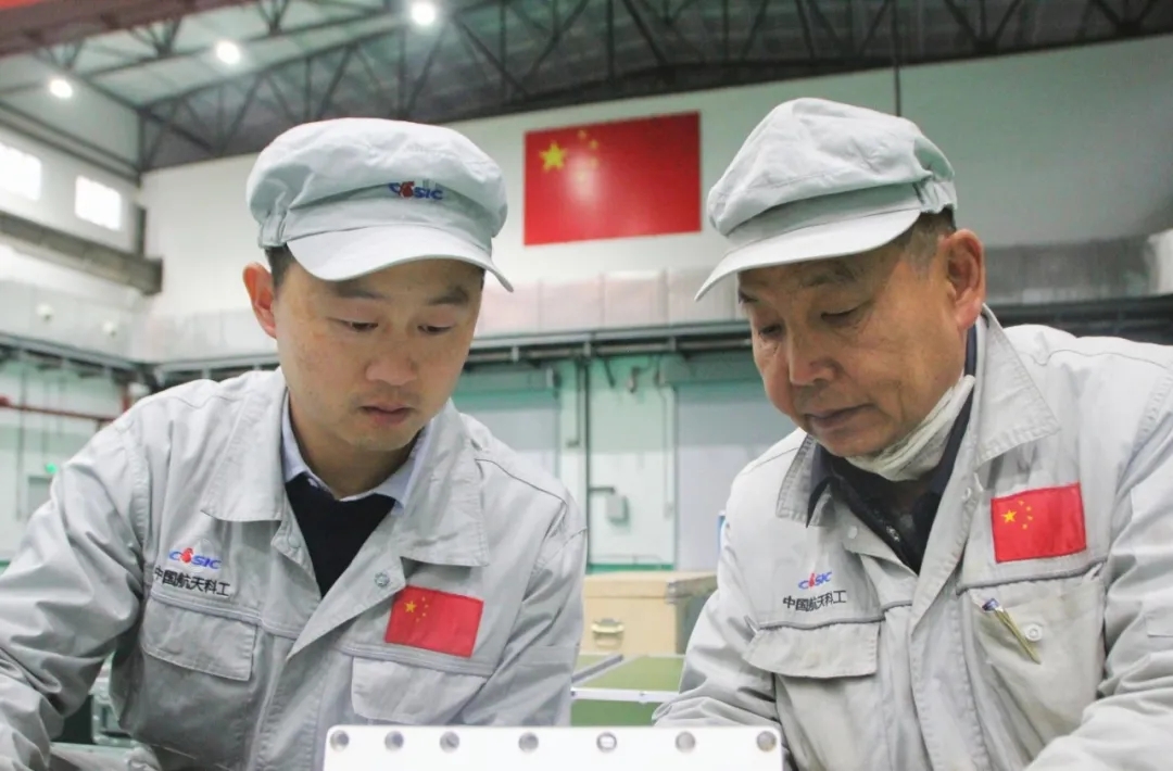 裝配車間內,負責首件產品艙段裝配工作的操作員楊振宇,正手持塞尺,對一部件的安裝間隙進行裝后自檢。