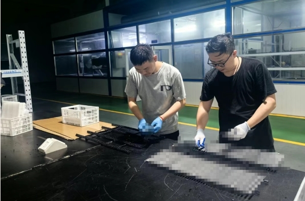 全力促生產(chǎn)同心協(xié)力:當(dāng)噴涂線深夜積壓時,剛完成氧化任務(wù)的易工、岳工、葛工等人主動轉(zhuǎn)戰(zhàn)支援;檢驗寧工、方工、鮑工、黃工組成“多維質(zhì)量鎖”,接力合作完成產(chǎn)品檢驗,最終實現(xiàn)產(chǎn)品的如期交付。“屏蔽能手”葛工忙完本崗后站在涂膠工作區(qū),用纖纖巧手幫助伙伴校準(zhǔn)膠槍軌跡;“萬能”吳工是哪里需要奔哪里,產(chǎn)線各處都能看到他忙碌協(xié)作的身影。