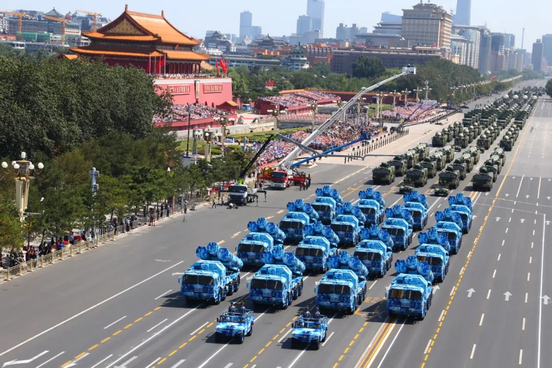 大國長劍,浩蕩東風。作為受閱裝備方隊的壓軸巨陣,由7個型號導彈方隊組成的戰略打擊模塊成為此次閱兵式的焦點。其中,東風21D導彈是打擊艦船目標的陸基彈道導彈,懾控范圍廣、攻擊速度快、突防能力強,是我軍海上非對稱作戰的“殺手锏”武器;長劍10A巡航導彈具備隱身突防、復合制導、連續攻擊能力,命中精度高、殺傷威力大,是我軍精打要害、克敵制勝的主戰裝備……這些導彈武器裝備為國家的領土、領空、領海筑起堅固的鋼鐵長城,不僅保障著中國的大國地位,也直接決定著我國能否擔負起建設持久和平、共同繁榮的和諧世界的使命。
