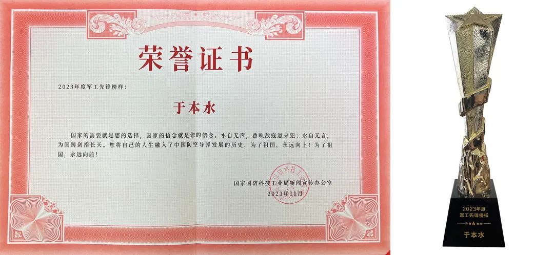 2023年12月28日晚,由中央廣播電視總臺軍事節目中心和國家國防科技工業局新聞宣傳中心聯合打造的年度重點特別節目《軍工先鋒》在CCTV-7國防軍事頻道播出。我國著名防空導彈專家于本水院士當選2023年度“軍工先鋒榜樣”。
