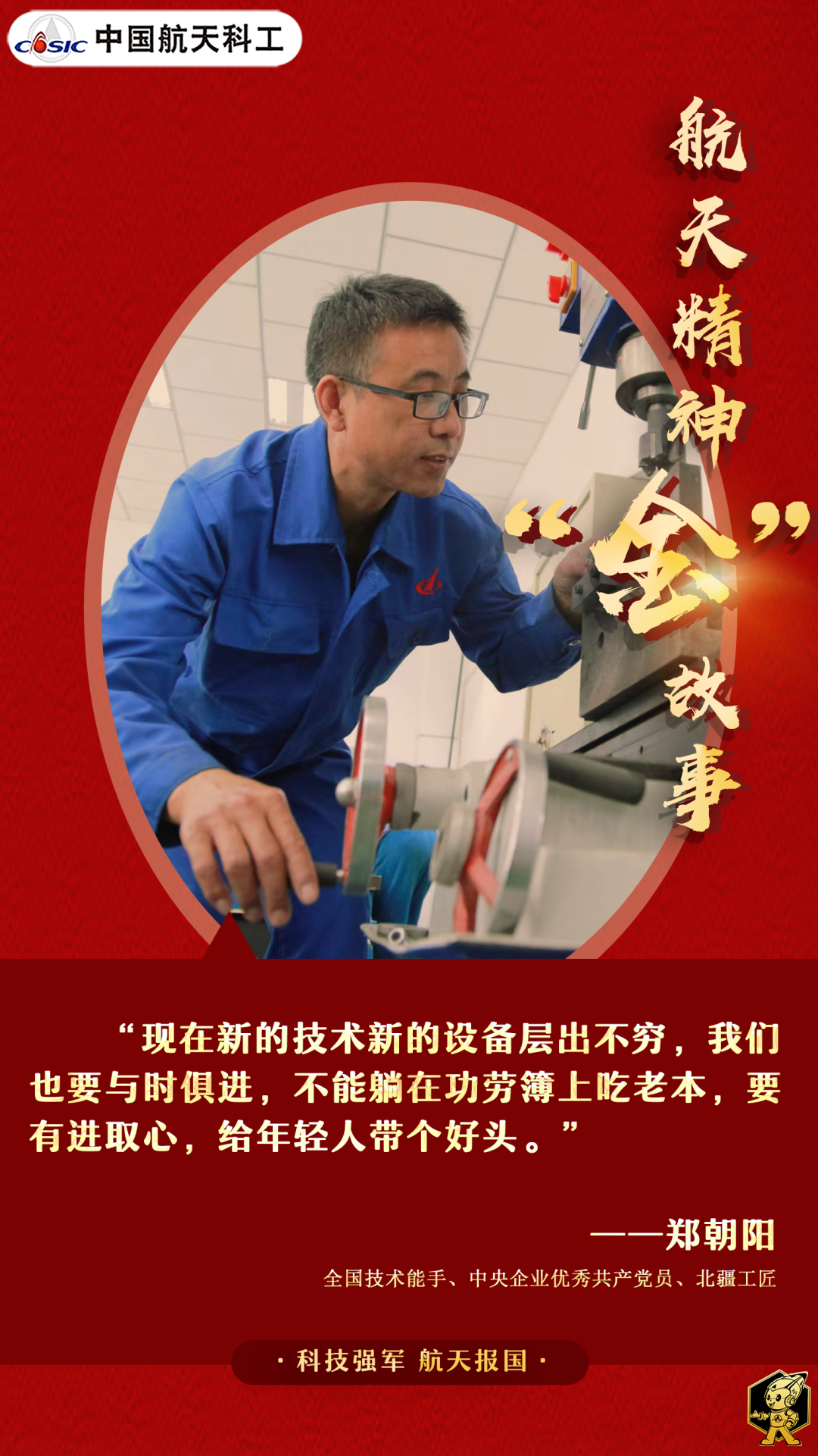 鉗工之藝,毫厘定成敗,鄭朝陽經手的零件都能達到“零誤差”。36年創新求變,他屢次攻克技術壁壘,將設計原理變為現實,他從不怕事,遇到困難敢于應戰,關鍵時刻能扛事,靠的就是那顆執著專注、精益求精、一絲不茍、追求卓越的匠心和他一入航天國為重的擔當。
