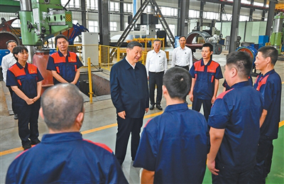 7月7日至8日,中共中央總書記、國家主席、中央軍委主席習近平在山西考察。這是7日下午,習近平在陽泉閥門股份有限公司考察時,同企業(yè)員工親切交流。新華社記者燕雁攝