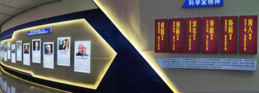 站在山巔遠眺,距離“功勛飛機”不遠處,有一個外形酷似太空艙的圓形建筑,這里便是三院“科學家精神教育基地”的室內(nèi)展館。