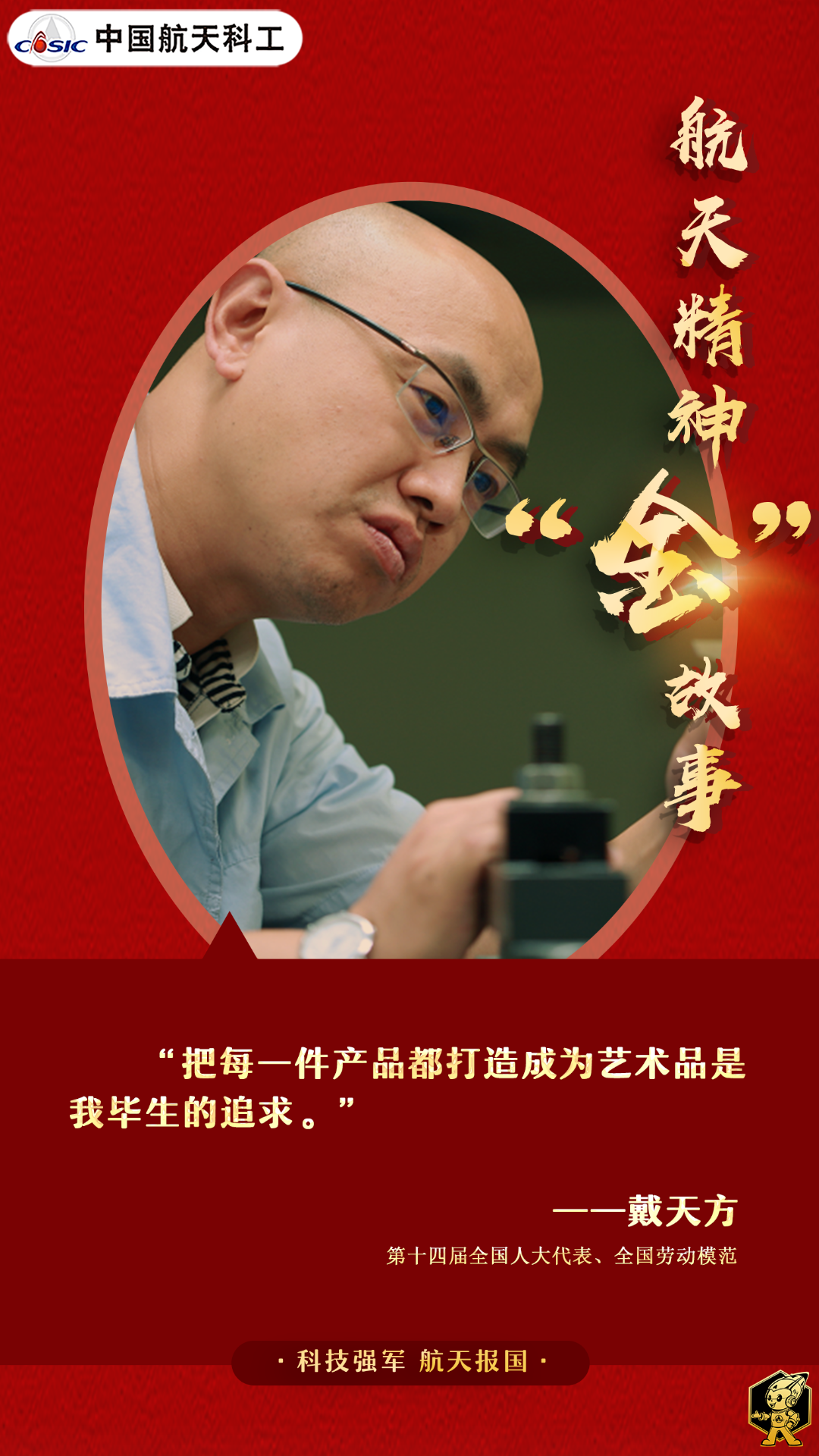 就這樣一天天,一步步,戴天方從一名普通工人,成長為中國航天科工的首席技師,參與了二十余個(gè)系列飛航裝備的“研制-定型-批產(chǎn)”全過程。他用日復(fù)一日的實(shí)際行動(dòng),踐行著“讓每件產(chǎn)品成為藝術(shù)品”的工匠精神,詮釋著“追求極致”的航天文化。(海報(bào)/張藝馨 文/辛笑穎)