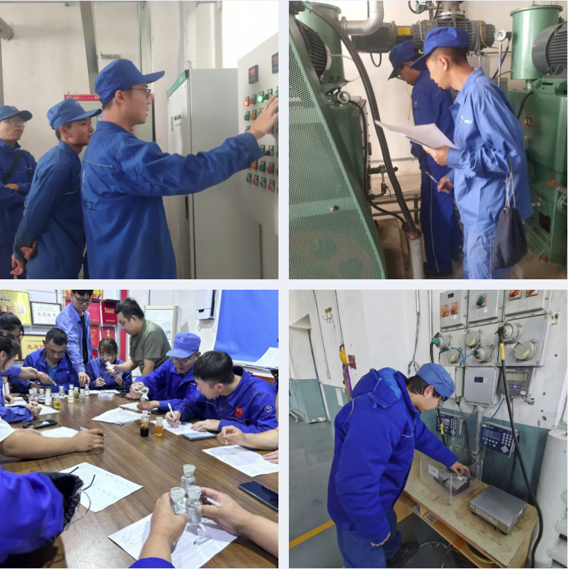澆注組從設(shè)備操作前準(zhǔn)備工作、操作注意事項(xiàng)、工作結(jié)束設(shè)備關(guān)閉順序、設(shè)備故障判斷推理方法等方面進(jìn)行了重點(diǎn)考察,參賽人員對(duì)答如流。稱(chēng)量組舉行了原材料辨識(shí)競(jìng)賽活動(dòng),參賽人員從原材料的狀態(tài)、顏色、氣味、名稱(chēng)和規(guī)格進(jìn)行判斷,細(xì)微的差別是對(duì)參賽人員最好的考驗(yàn)。