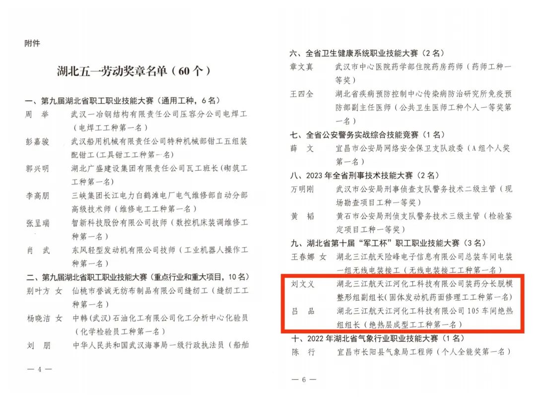 同時,從湖北省總工會《關于命名2023年荊楚工匠學院暨表揚省級優秀帶徒名師、學習型職工的通報》(鄂工字[2023]57號文)獲悉,公司職工呂品喜獲2023年湖北省“優秀學習型職工”榮譽稱號。