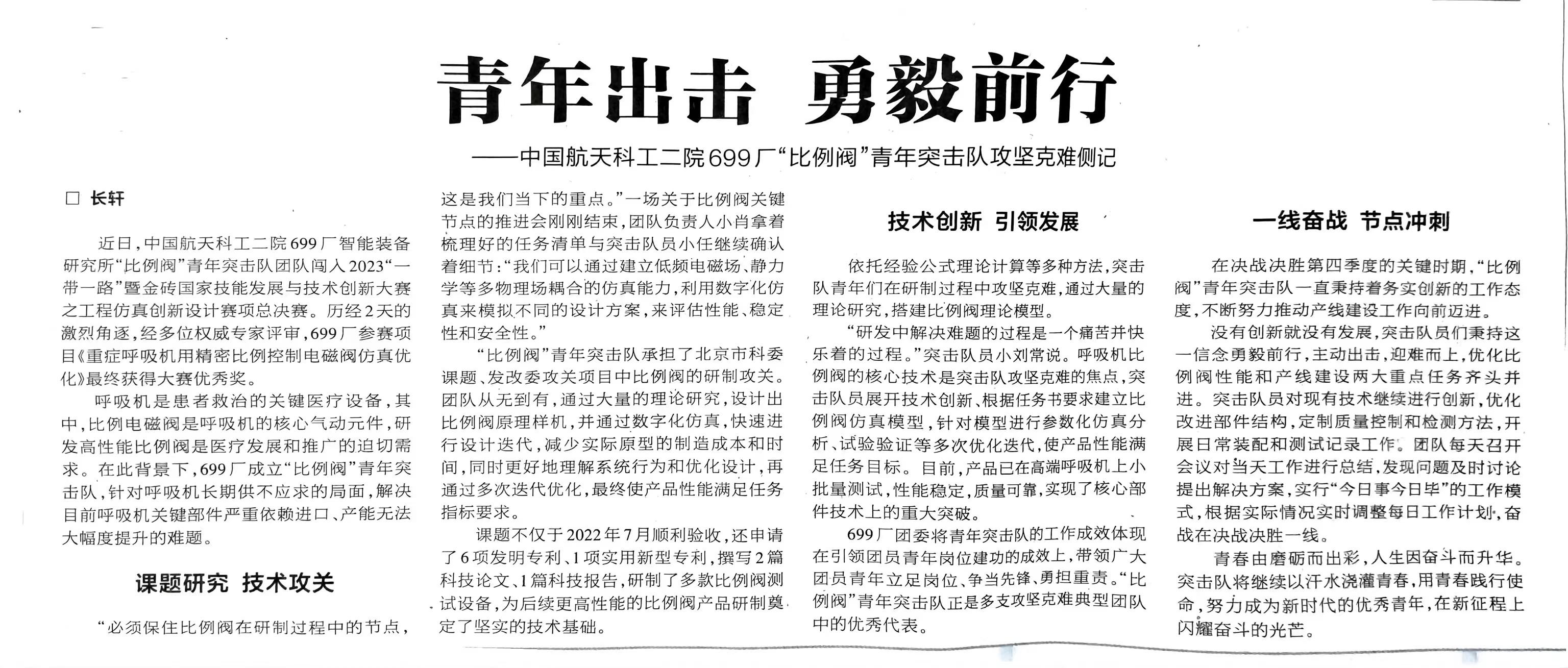 在全年科研生產(chǎn)工作中,青年突擊隊成績斐然。在全院一盤棋精神感召下,迅雷青年突擊隊大力協(xié)同,勠力力同心、努力拼搏,加班加點,僅用4天完成兄弟單位某設備生產(chǎn)調試任務,為兄弟單位在空間特殊環(huán)境中試驗提供了有力保障;二齊青年突擊隊在承接任務過程中積極創(chuàng)新,自制工裝,研究新方法,新技術,使得技術方法有了新的突破,拓寬了699廠承接任務廣度;加油桿青年突擊隊為了全力保障總體在試驗場調試進度,將調試任務模塊化分配,并責任到人、節(jié)點到天,成功配合總體完成聯(lián)調;“極限沖鋒”青年突擊隊杜絕“差不多”,追求“零缺陷”,認真梳理產(chǎn)品狀態(tài),做好工藝審查,提早發(fā)現(xiàn)問題,留出解決問題的時間,提前消除質量隱患,為一流質量保駕護航;“創(chuàng)新創(chuàng)效”青年突擊隊在保障生產(chǎn)任務同時,年度突破性承接15項課題研究工作,編制和修訂標準7項,特殊過程確認9項;翱翔青年突擊隊致力于科研創(chuàng)新,依托型號任務積極開展工藝攻關與工藝細化量化工作,通過創(chuàng)新手段實現(xiàn)精細化管理,獲得2023年中國創(chuàng)新方法大賽北京賽區(qū)二等獎;“比例閥”青年突擊隊獲2023一帶一路暨金磚國家技能發(fā)展與技術創(chuàng)新大賽優(yōu)秀獎。青年突擊隊始終用青年合力為企業(yè)科研生產(chǎn)任務的高質量完成作出了堅強的保障。