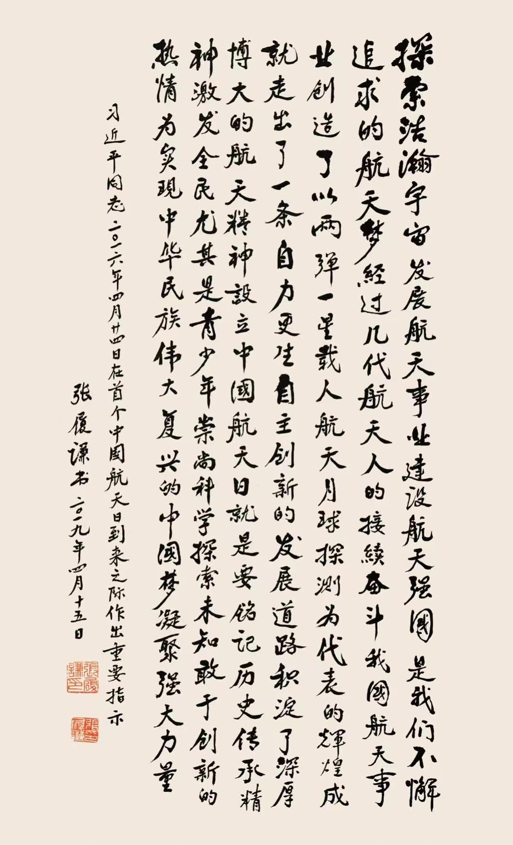 張履謙院士是我國雷達(dá)、電子對抗和航天技術(shù)領(lǐng)域的著名專家,中國工程院院士,是我國航天事業(yè)發(fā)展的親歷者見證人。本次書法展分為“領(lǐng)導(dǎo)指示”“航天精神”“對青少年的鼓舞”“詩詞格言”等四個專題,共展出張履謙院士書法作品百余幅作品。