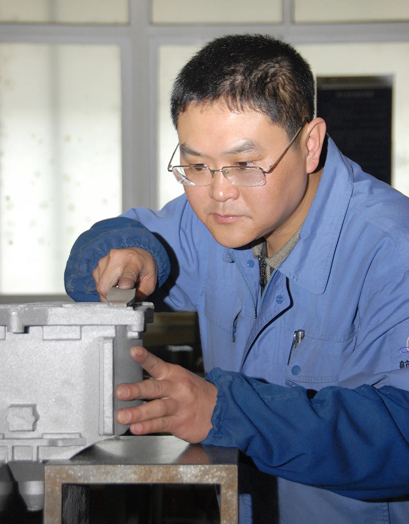 憑著多年的勤學苦練及工作中積累的操作經驗,陳斌在深盲腔體的精細化加工、手工刃磨各種材料的群鉆、小螺紋攻絲與絲錐的刃磨、高精度劃線鉆孔等方面已小有建樹。