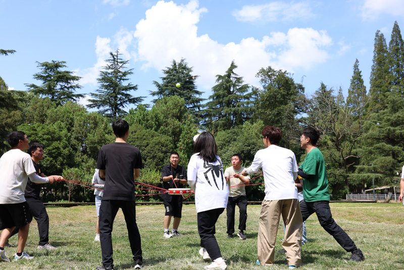 活動以半開放式徒步拉開帷幕,整個徒步路線長達12公里。徒步結束后,大家前往花溪公園匯合,分4組開展趣味挑戰賽。本次挑戰賽設計了“漢諾塔、躲避球、同心擊鼓、蒙眼敲一敲、不倒森林”等5個團隊競技項目,并采取積分制進行排名。各組隊員團結協作,積極溝通,認真練習,全力參賽,活動氛圍熱烈又融洽,場上歡聲笑語此起彼伏,熱鬧十足。活動結束后,各組隊員根據積分排名領取獎品并合影留念。