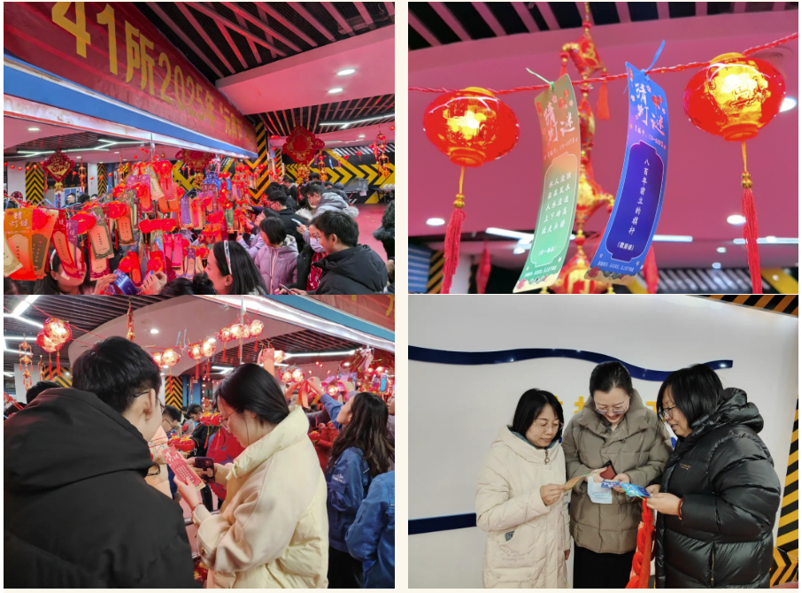 活動(dòng)現(xiàn)場張燈結(jié)彩,喜氣洋洋。41所工會精心組織,職工積極參與現(xiàn)場布置和活動(dòng)開展?;顒?dòng)現(xiàn)場懸掛著大大小小的中國結(jié)、紅燈籠,300多條燈謎琳瑯滿目,到處洋溢著濃濃的節(jié)日氛圍。