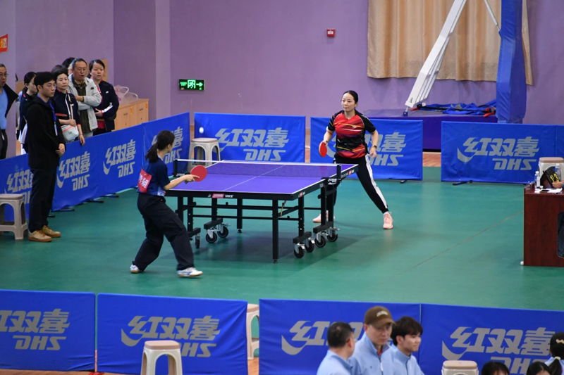 本次比賽分為男子團(tuán)體和女子團(tuán)體組,男子組共有17支代表隊(duì),女子組共有15支代表隊(duì),比賽采用團(tuán)體單打的形式進(jìn)行。球桌上,直拍橫拉、側(cè)旋擋球、上步搓球、側(cè)身進(jìn)攻、后退拉球、大力扣殺……選手們精湛的球技、奮勇拼搏的勁頭,讓比賽精彩紛呈;賽場外,熱烈的喝彩聲、整齊的加油聲,使整個(gè)活動(dòng)中心熱鬧非凡。